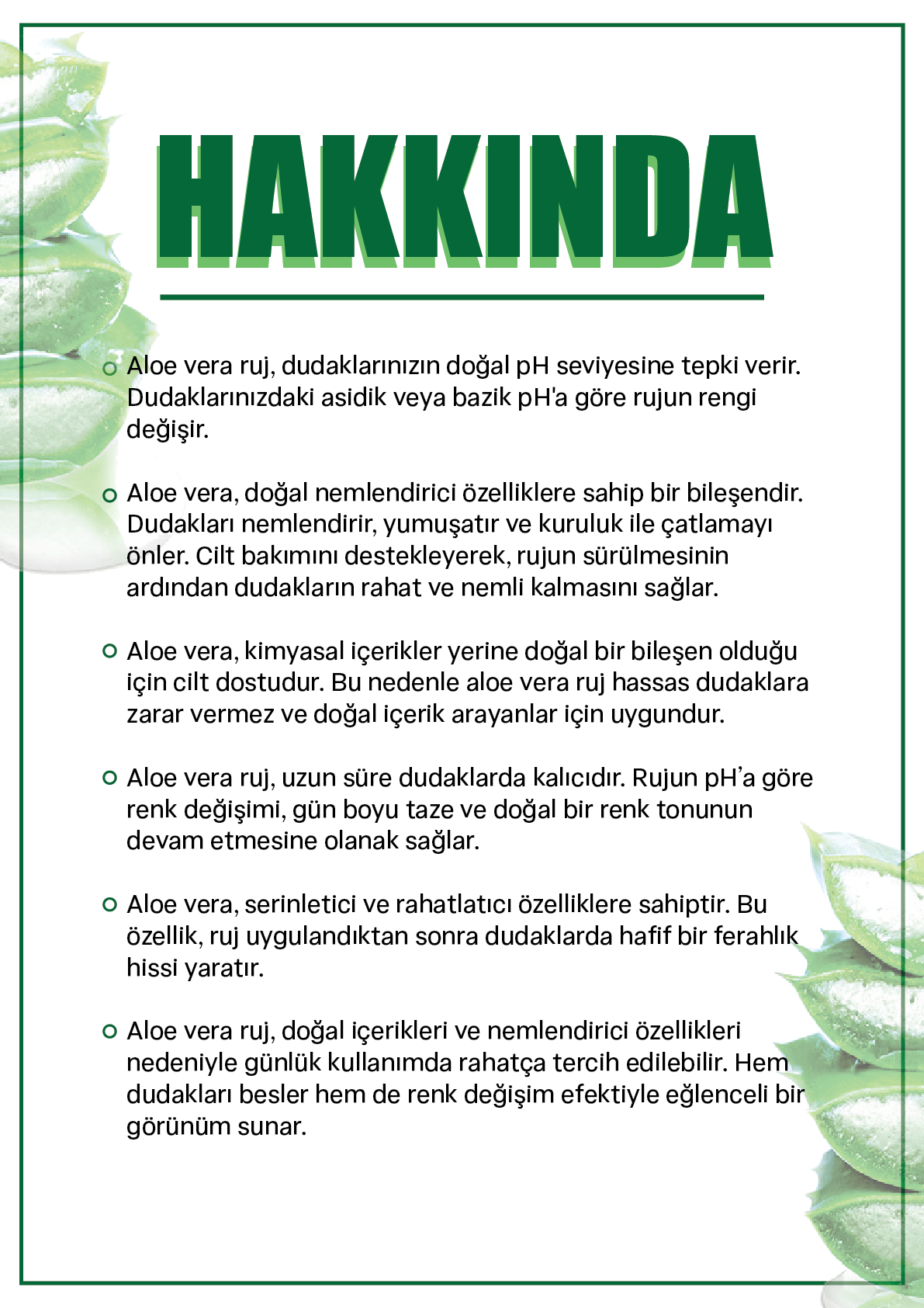 1 Adet ALOE VERA RUJ + (1 ADET BEDAVA) -